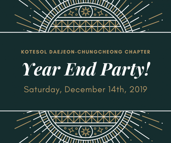 It's our Year End Party! We'll hold it in Ashley in Eunhaengdong (NewCore Department Store, 7th floor). All are welcome, but you must register as we'll reserve only enough seats for those that have registered. To register, please email dcc.kotesol.membership@gmail.com. We'll make the booking on the 11th, so make sure you confirm before then.
