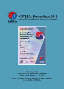 KOTESOL Proceedings 2019 is now available online. This is a volume of papers submitted by presenters at the 2019 Korea TESOL International Conference held in Seoul in October of 2019. The volume contains five contributions by our conference plenary and featured speakers as well as research session papers, action research reports, techniques and activities reports, and workshop reports ㅡ 30 papers in all, over 300 pages altogether. We hope you find within its pages an abundance of information of relevance to your research, your work situation, and your professional development.