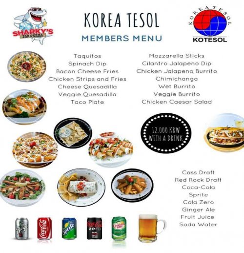 KOTESOL members can enjoy a special discount menu at Sharky's Bar & Grill in Busan (Gwangali and Haeundae)!