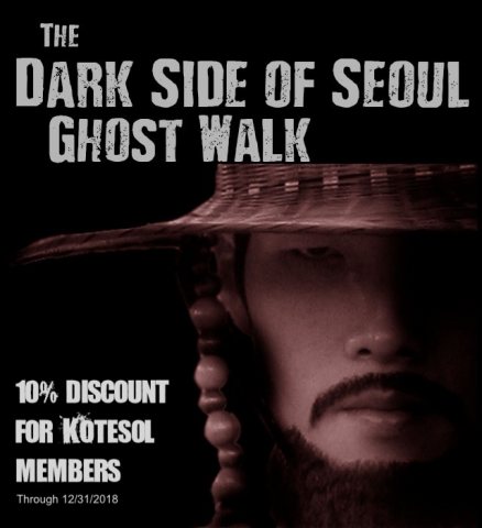 Do you enjoy tales of the macabre, bizarre, or paranormal? Would you like to explore the streets and back alleys surrounding some of Seoul's most historic areas on foot, with an experienced guide? Would you enjoy learning more about the dark side of Seoul's past? If so, this perk is perfect for you! Now through December 31, 2018, KOTESOL members can get 10% off The Dark Side of Seoul Ghost Walk. Just email us to receive the discount code!