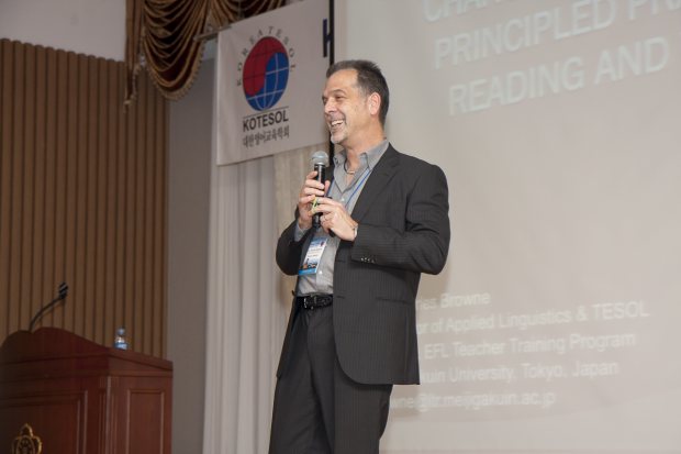 The final details are still being calculated, but it seems we had over 200 registered attendees, plus staff and volunteers. Participation from our publishing and training supporters meant that the event paid its bills. It seems all enjoyed the day despite the unseasonable heat outside. (Photos below by Jeroen Root for KOTESOL.)