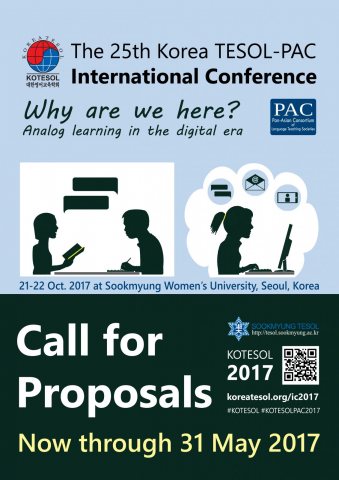 Korea TESOL would like to invite you to submit presentation proposals for its 25th Annual Korea TESOL International Conference. The conference, this year held in conjunction with the Pan-Asian Consortium of Language Teaching Societies (PAC), is scheduled for 21-22 October 2017 at Sookmyung Women’s University in Seoul.
