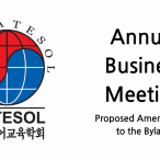 In accordance with the KOTESOL Constitution and Bylaws, KOTESOL will be holding the Annual Business Meeting (ABM) online on Sunday, November 1. All members are invited to attend! Reports on KOTESOL’s past year will be given, and election results will be announced.