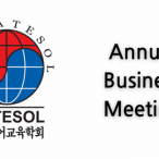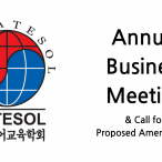 KOTESOL's Annual Business Meeting (ABM) is open to all members. The ABM will be held Tuesday, November 1, starting at 7 p.m. To attend, please register by 12 noon Tuesday.