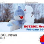 By Webeditor Membership on February 27, 2018 - 1:11pm | 0 Comments | Membership Committee |Read moreFebruary 2018 Issue of KOTESOL News Is Out!