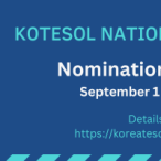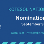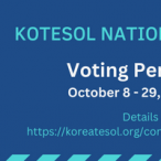 Members are encouraged to participate in the KOTESOL national elections, either as a candidate or as a voter. The nominations period runs from September 1 to 21, and candidates’ information and endorsements will be available online throughout the voting period (October 1-19).
