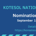 Nominations for elected National Council positions are open during the period September 1-21, 2025. For details, go to the Nomination and Elections pages at https://koreatesol.org/elections.