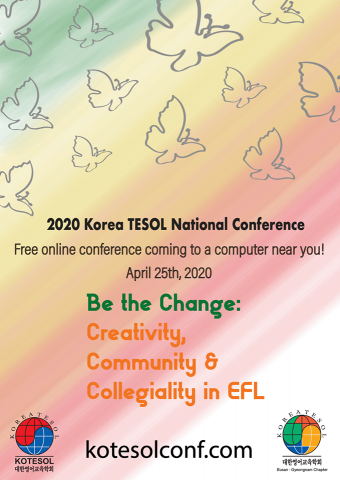 Due to the pandemic of the Novel Coronavirus Disease 2019 (COVID-19) in Korea, the 2020 KOTESOL National Conference will not be held as a place-based meeting on April 25 at Kyungnam University in Masan. Instead, it will transition to an online conference with the goal of providing an authentic and meaningful experience for all participants.